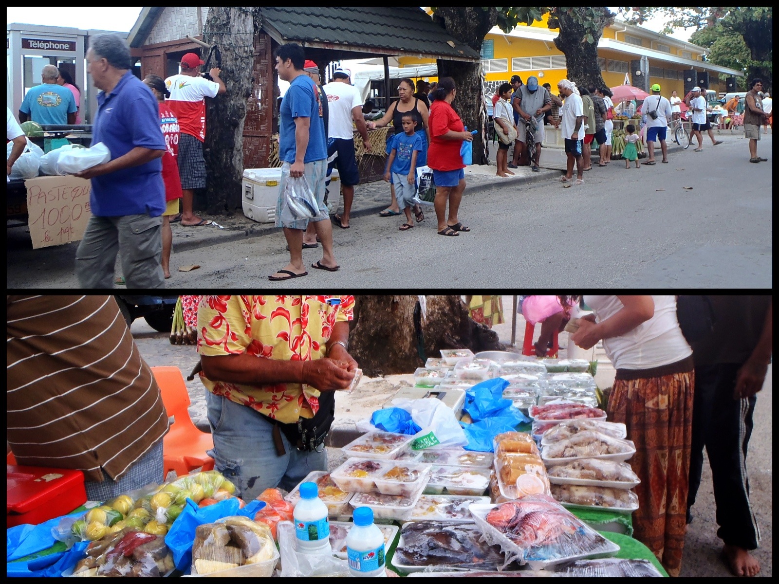 13 novembre – C’est dimanche, jour du marché à Fare, ville principale à Huahine Nui et on doit se lever vers 5h pour s’y rendre. Pas de risque de passer tout droit, les nombreux coqs vous réveillent dès 4h-4h30. Alors vite sous la douche, pas de p’tit déjeuner, ni café, ce sera au retour.