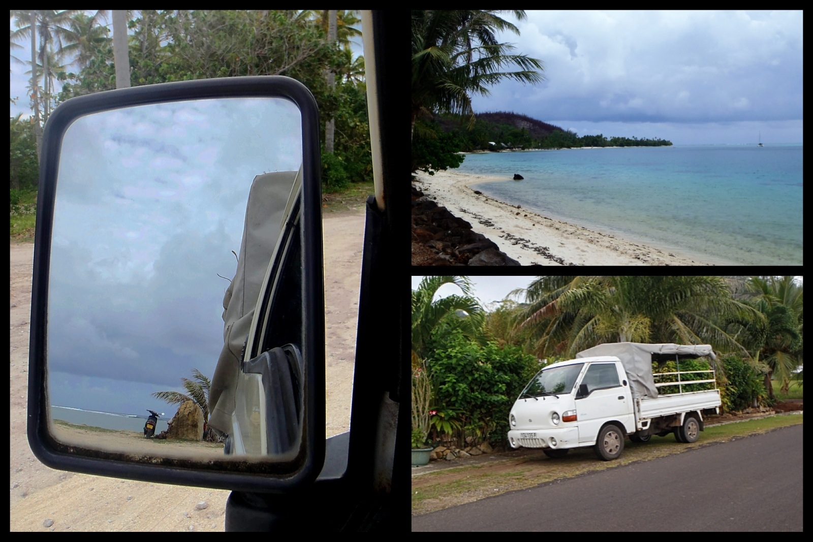En après-midi, Tutea me prête son camion pour effectuer le tour de Huahine Iti. Lolita ne sait pas conduire. Elle m’accompagne, elle est de bonne compagnie et connait bien ses îles. Les paysages sont d’une grande beauté: la mer d’un côté, la jungle de l’autre. La route est sinueuse et en excellente condition. Nous longeons le grand motu Murimabora, la grande baie Mahuti.