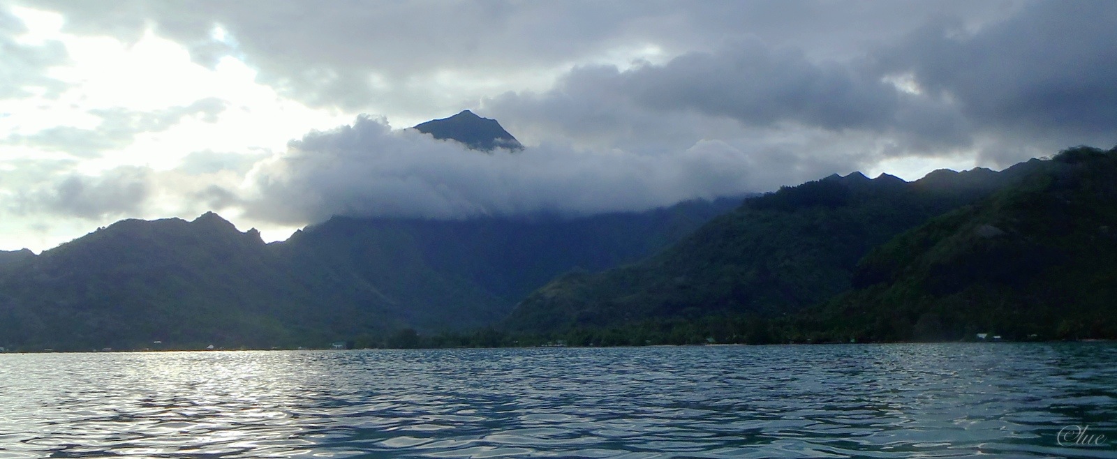 Vers 10h30, alors que j’arrive Au petit Village pour m’installer à un snack ayant le wifi, la pluie tombe drue. Je fais mon texte pour le blogue, réponds aux courriels, prends une bonne Hinano et une pizza, et deux heures plus tard la pluie à cesser. Je reprends donc la route. Le décor grandiose se prolonge: la route côtière contourne le mont Rotui dont le sommet est ennuagé aujourd’hui. Parfois, pour rigoler, les habitants disent que le sommet est enneigé! Au fond des deux grandes baies de Moorea, deux vallées s’enfoncent vers l’intérieur des terres. Je roule sur la route des ananas (vallée de Papao), très boueuse et en mauvaise condition., Je prends ensuite une autre route pour visiter les sites archéologiques de la vallée d’Opunohu comptant parmi les mieux mis en valeur en Polynésie.