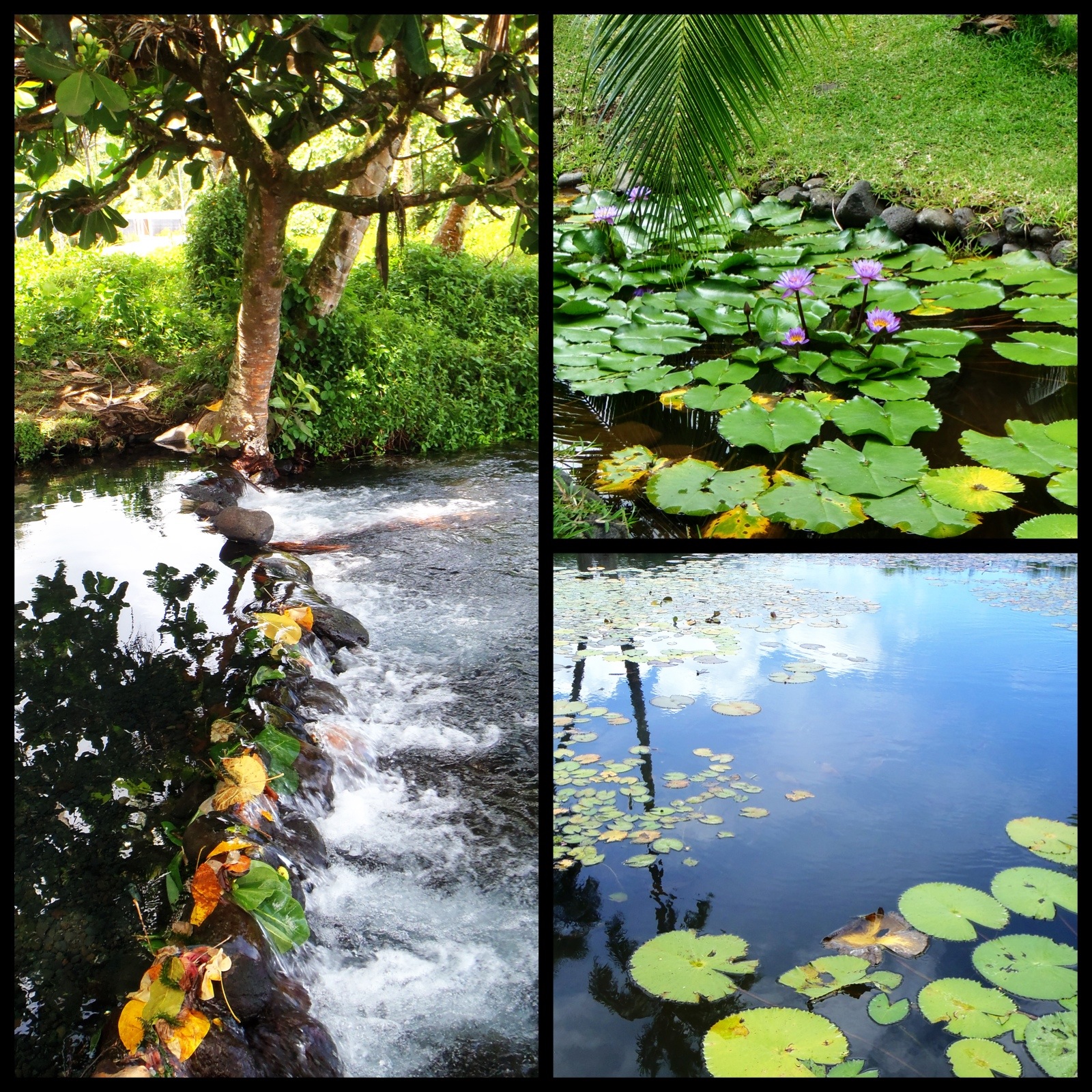 Sur le chemin du retour, je m’arrête aux Jardins d’eau de Vaipahi. C’est tranquille, zen, j’y fais là aussi une belle balade, les sentiers sont bien aménagés. N’ayant pu écrire au snack, je dois me trouver un endroit pour écrire et expédier mon texte avec le wifi. Pas toujours facile à trouver ici.