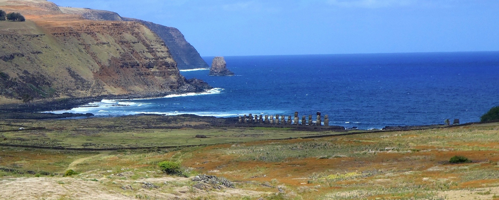 11h- Quelle liberté et quelle joie de circuler avec mon 4×4 sur les routes et pistes de l’Île de Pâques. C’est surréaliste… Je répète à voix haute: Je suis à Rapa Nui, je suis à l’Île de Pâques, je suis le Te Pito O Te Henua! Hahaha, non faudrait surtout pas! Je souhaite ne jamais épuiser cette capacité d’émerveillement qui m’habite.