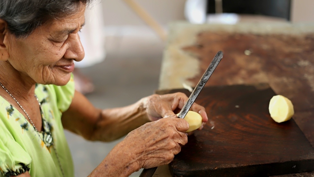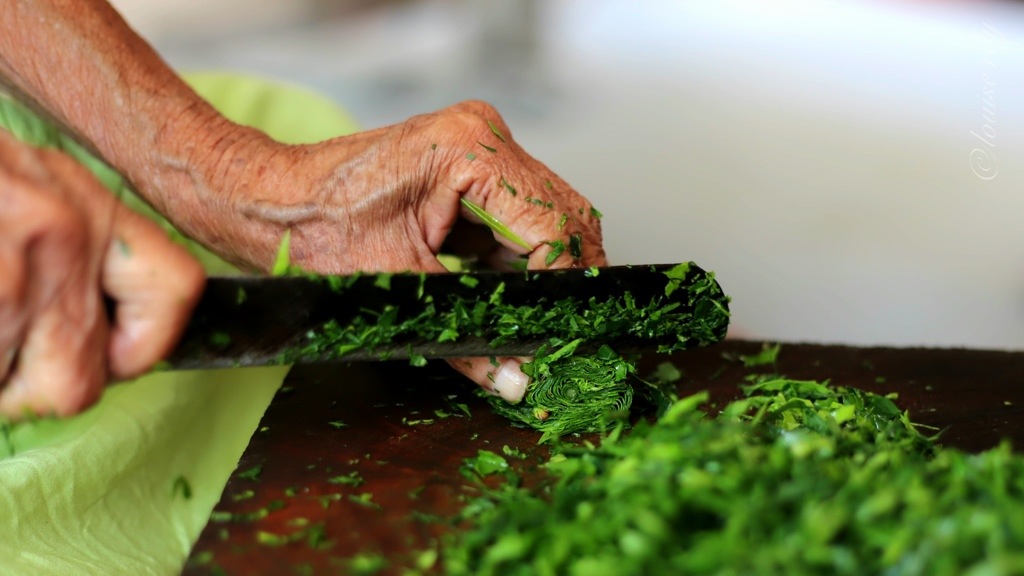 Les pensionnaires ayant les capacités de le faire, aident à la préparation des légumes. C’est fascinant de constater autant d’agilité dans le hachage des herbes fraîches.