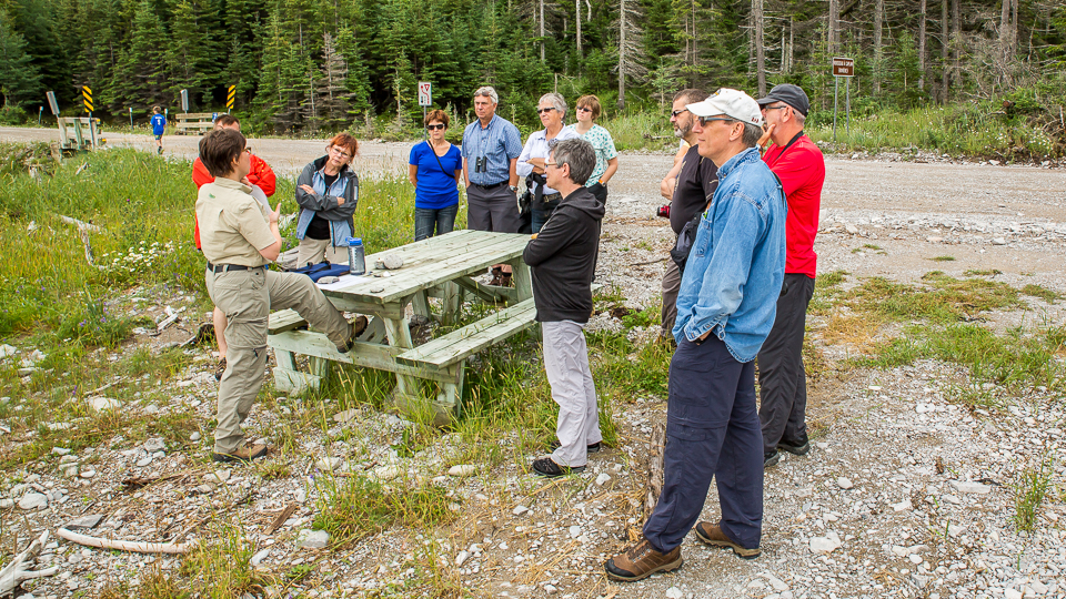 9h00 – Natacha, employée de la SÉPAQ et garde-parc naturaliste, dirige une expédition de quelques heures pour explorer les environs tout en nous instruisant sur l’histoire de l’île d’Anticosti. Nous formons une caravane de six pick-up se déplaçant d’un site à l’autre. Johanne et Louis, hébergés au chalet de la Patate, font également partie des caravaniers. Natacha en tête de peloton, nous entretient via la radiocommunication, canal 3, sur des sites incontournables à visiter au cours de notre séjour. C’est vraiment génial pour faire du repérage.