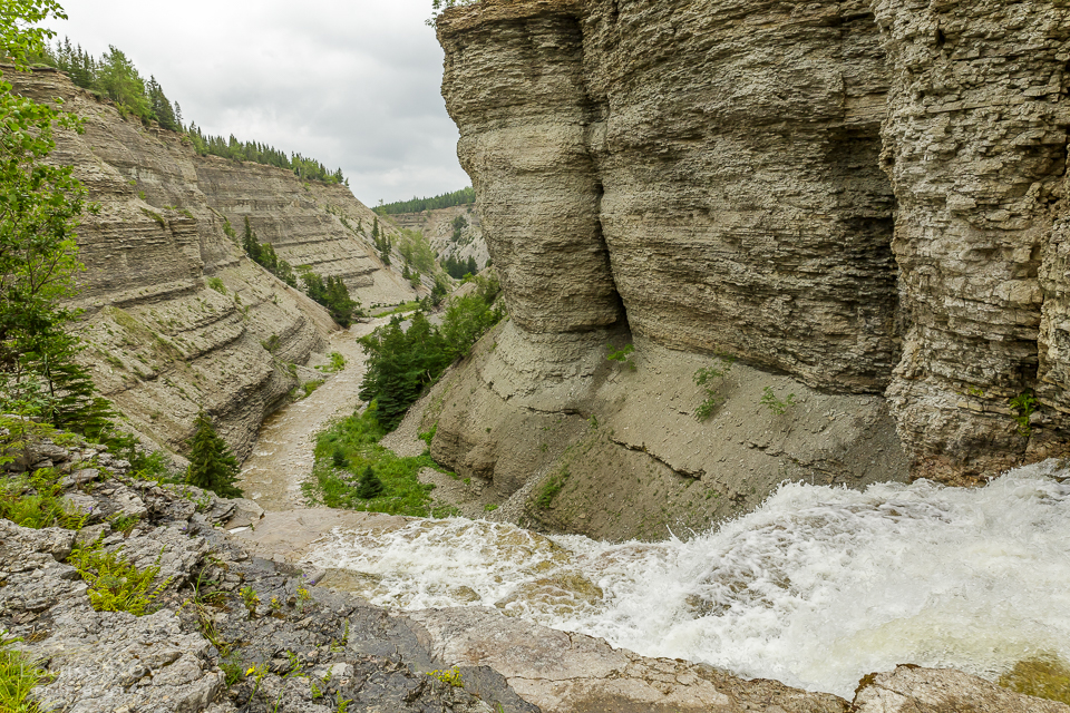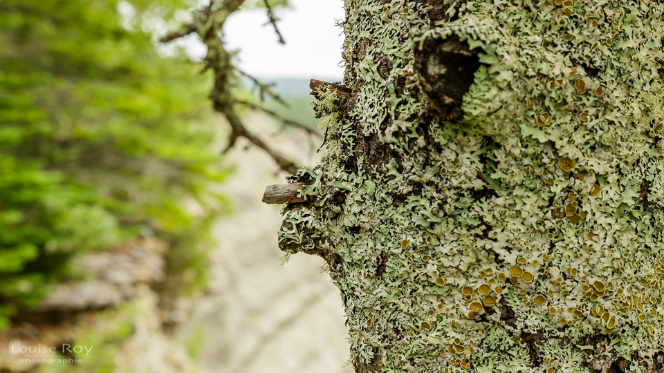 13h00 – Nous dînons au belvédère et c’est le moment où Natacha nous quitte pour rentrer à l’Auberge. Certains prendront le sentier pour longer le haut du canyon, d’autres iront emprunter le sentier de la rivière pour atteindre le bas de la chute. Johanne, Louis et moi convenons de se suivre pour aller à la Baie de la Tour (photo du haut).