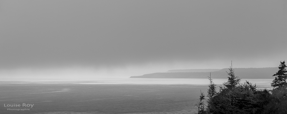 3h45 – Je roule vers la Pointe Carleton avec le fol espoir de capturer un lever de soleil intéressant. Quinze minutes plus tôt, je me suis levée sur la pointe des pieds pour ne pas réveiller tout le pavillon, mais je crains que le démarrage de « la Bête » ait interrompu quelques rêveries. La météo du jour est à la pluie et le bas du ciel offre peu d’ouverture au soleil naissant. Déjà à la pointe est au loin les nuages de pluie se disputent le territoire avec les rayons du jour.