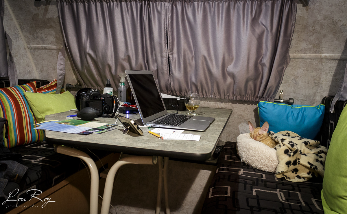 Samedi, 13 août 2016 – J’émerge de ma torpeur nocturne doucement secouée par Criquette. Ooohhh, c’est venteux ce matin! La toile de l’auvent claque au vent et contribue aux secousses sur la roulotte. Sharly est inquiète… j’ajoute à son anxiété en déclenchant l’alarme avec mes toasts brûlées. Quelques minutes plus tard, l’alarme de propane hurle!! J’ouvre tout : porte, fenêtres, ventilateurs. Elle se tait. L’alarme. Mais pas Sharly qui miaule de désespoir!