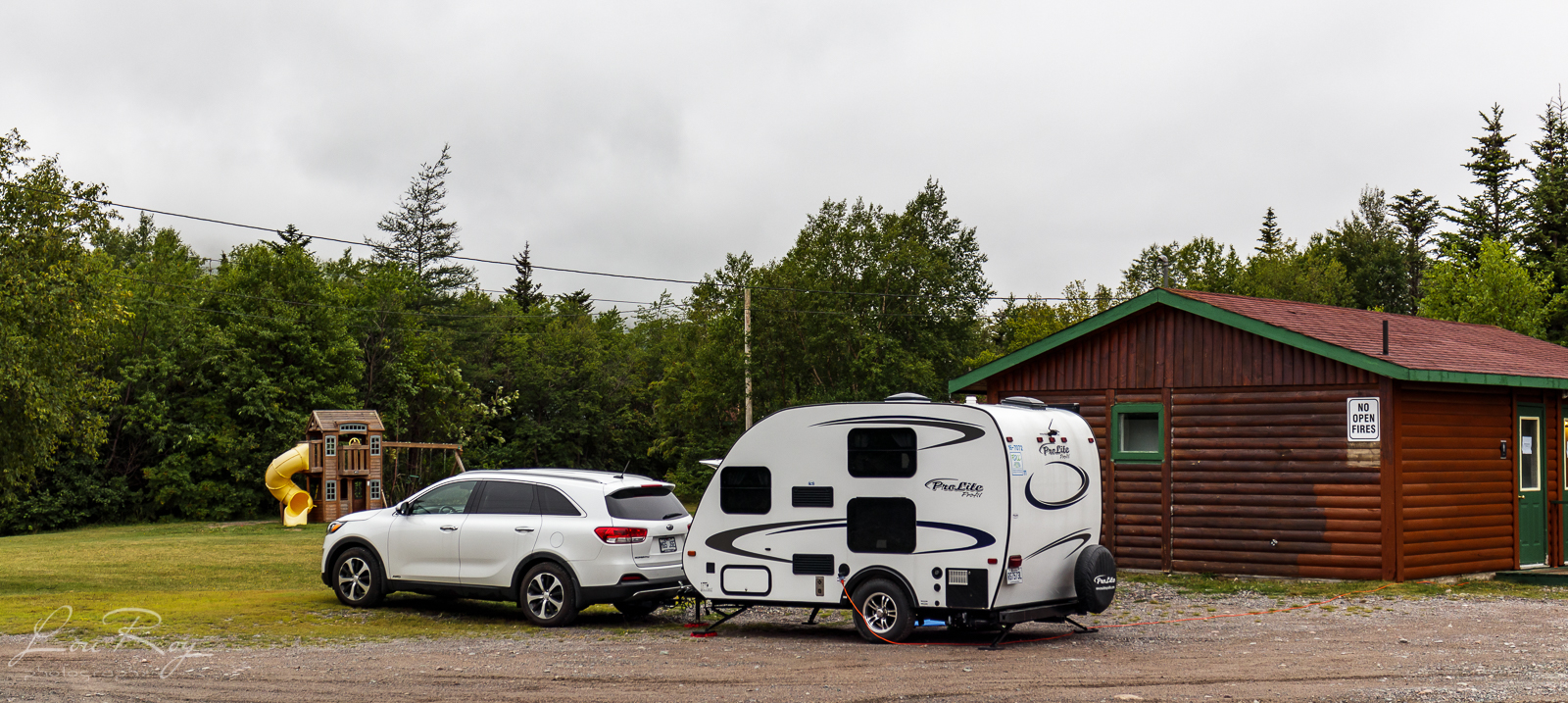 Camping Kilmory Resort à Swift Current – Il n’y avait plus de place à mon arrivée, mais la dame à l’accueil m’a gentiment offert de me stationner à côté du Comfort House et de me brancher à la prise du bâtiment. Toute entourée de la forêt et du silence!!