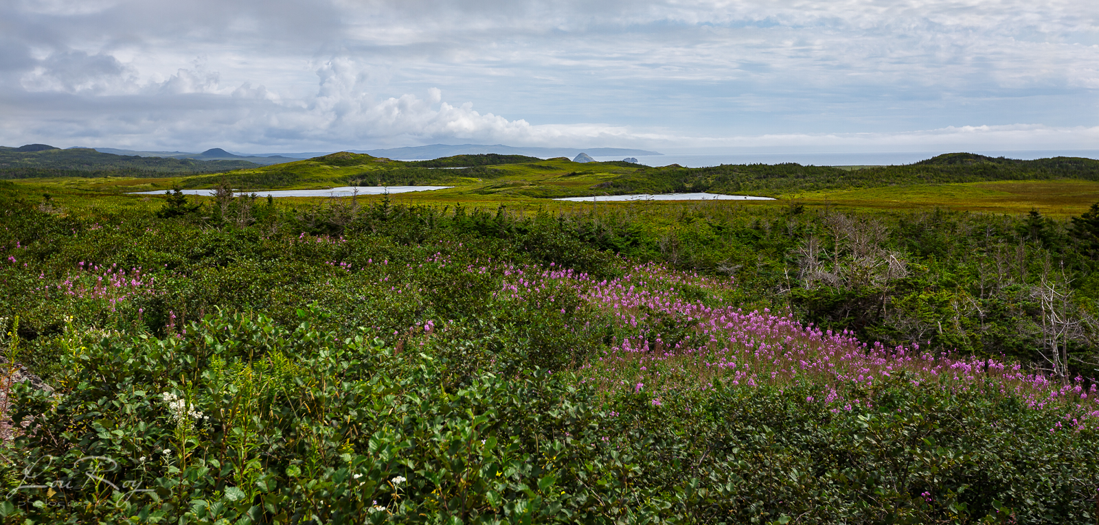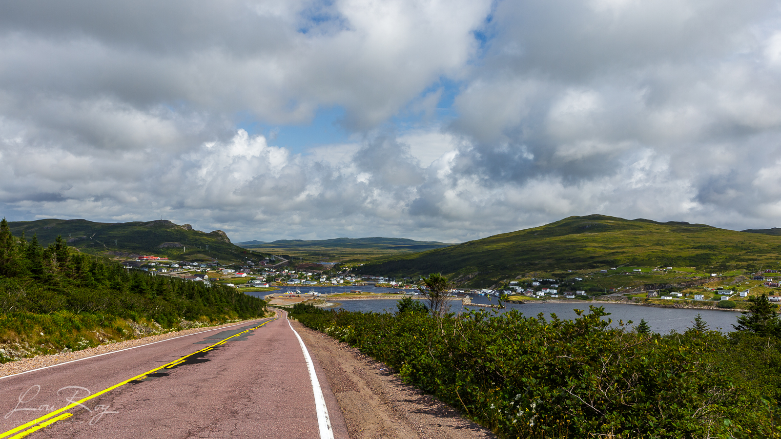 La petite communauté de Lawn. L’asphalte rose contraste bien avec le bleu du ciel et la verdure! Une baie vraiment de toute beauté!