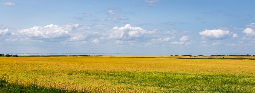 Depuis Yorkton, les plaines de cultures sont immenses!!  Des champs, des cultures, une route à perte de vue!!  Un fabuleux garde-manger!  Je comprends l’empressement des chinois à acheter le plus possible ces terres démesurées… Tout un grenier!  Je ne sais pas de quelle plante jaune vif qu’il s’agit?  De la moutarde? Du colza?