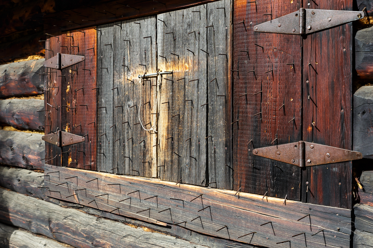 Les premières cabanes étaient protégées contre l’intrusion de grizzlys par les fenêtres avec ce système de clous.