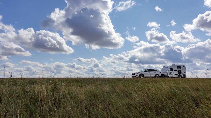 Je m’installe au Dinosaur RV Park à Drumheller. 🙂  Cette ville fondée sur l’exploitation du charbon profite désormais d’une autre ressource souterraine: les fossiles de dinosaures.  Petite bourgade située au beau milieu des énigmatiques Badlands de l’Alberta, elle est aussi au coeur du Dinosaur Trail.  On ne plaisante pas avec la paléontologie ici:  le Royal Tyrrell Museum, non loin, n’est pas seulement un site à visiter, mais aussi un centre de recherche.(Lonely Planet)  C’est que je vais voir demain!