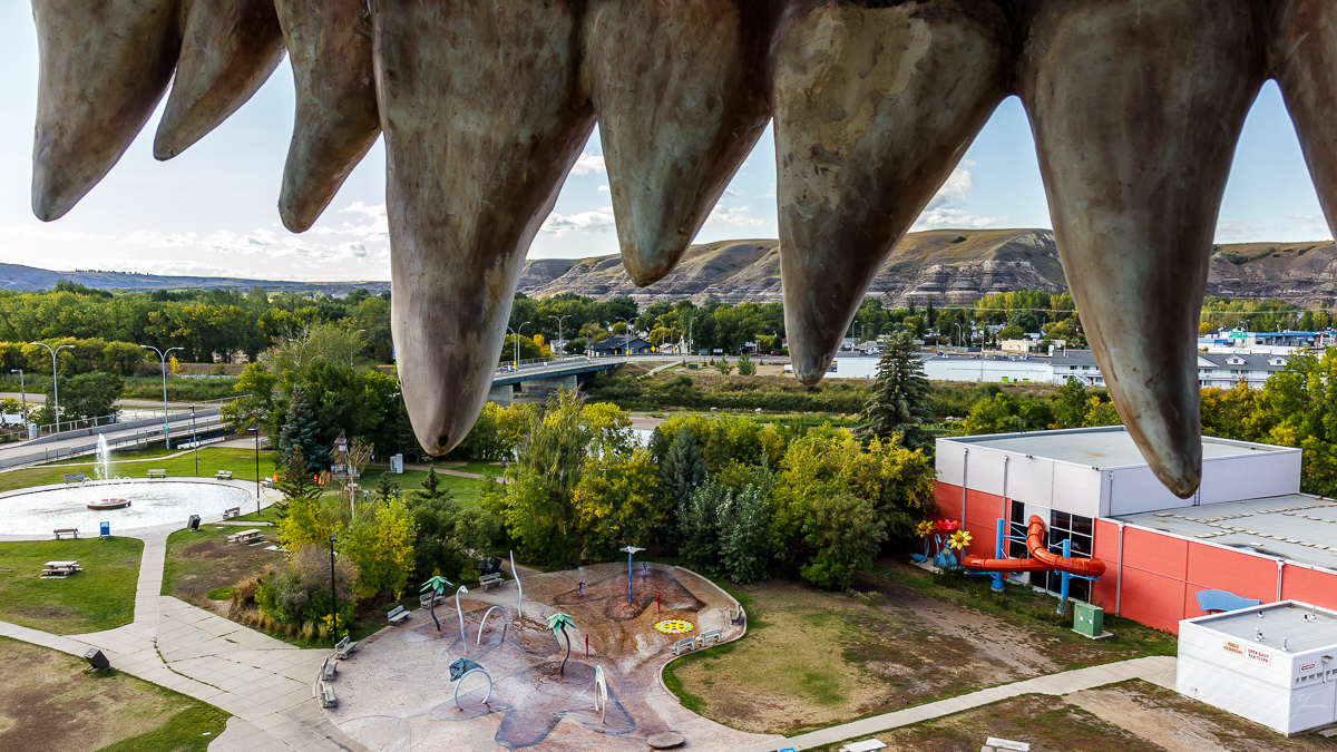 De la gueule du dinosaure, vue sur la vallée de Drumheller