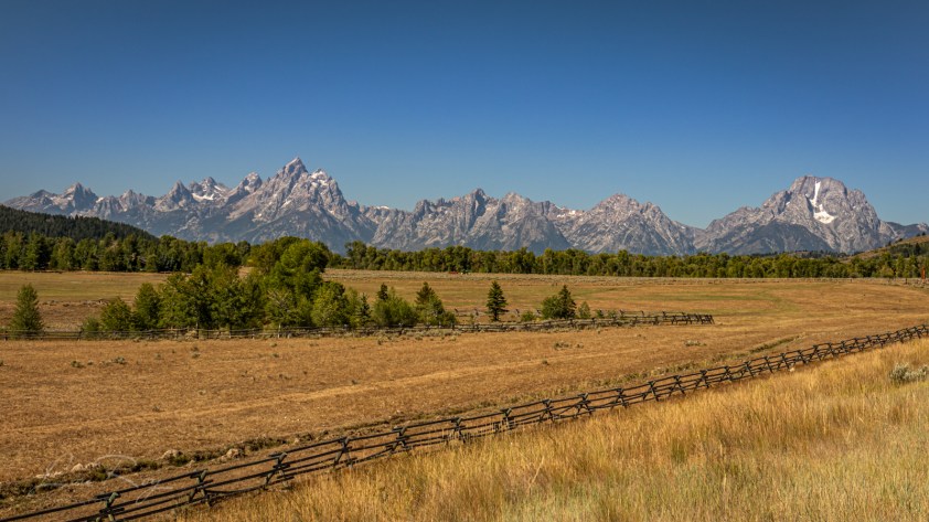 « La spectaculaire chaîne des Tetons, la plus impressionnante d’Amérique, se dresse juste au sud du parc national de Yellowstone, au-dessus d’une large vallée, près du cours supérieur de la Snake. Avec Grand Teton (4 197m) pour point culminant, ces montagnes, qui s’étirent du sud au nord, sont le joyau du parc national de Grand Teton: 1 250 km carrés de pics déchiquetés, lacs alpins, torrents, terres marécageuses et plaines couvertes d’armoises et de trembles. » Extrait du Guide Vert.