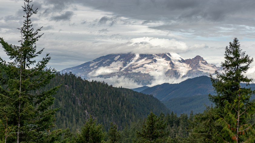 Le Mt Rainier – Pour les intéressés, au départ de Paradise, l’ascension (3 000 m de dénivelé) exige un permis (45$) et bien entendu une parfaite préparation physique, de bonnes connaissances techniques et un équipement adapté. Elle prend 3 jours, avec 2 nuits au camp de base de Muir, à 3 000m d’altitude. – J’ai réussi à photographier le sommet!