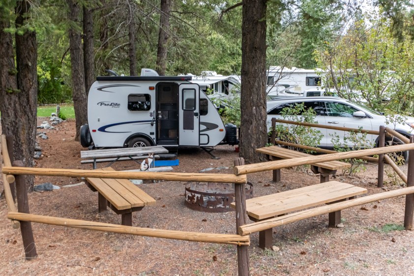 16:30 – Le camping est joli. En tout cas – mon site no. 28. J’arrive devant mon lot et descends de mon camion pour explorer les lieux : où est l’entrée électrique, l’entrée d’eau, l’arbre, la table, le nivellement du terrain, bref un examen visuel qui me permet généralement de simplifier mon installation et la mise à niveau.