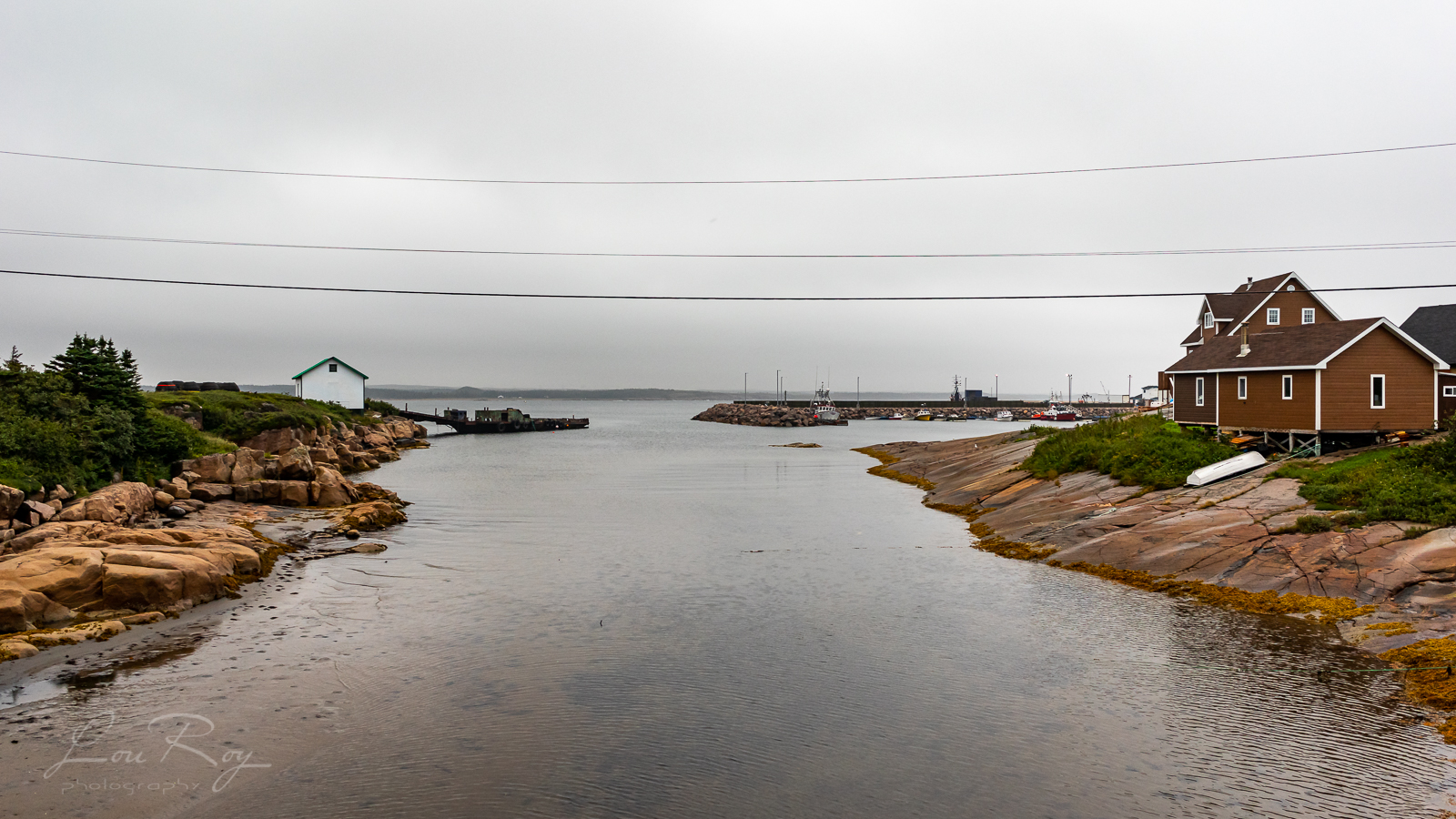 De retour à Natashquan, j’emprunte une promenade de bois derrière le bureau touristique pour avoir une vue sur la baie et les Galets. – Les Galets (photo ci-dessous), ce village dans le village, est un bien culturel classé par le gouvernement du Québec, désignent à la fois l’île de pierre et les hangars de pêcheurs. Depuis 150 ans, ils résistent et témoignent de la vie des ancêtres. Lieu de mémoire, de souvenirs et de nostalgie du temps où la pêche à la morue était un métier et un gagne-pain à Natashquan. (Extrait du Guide touristique)