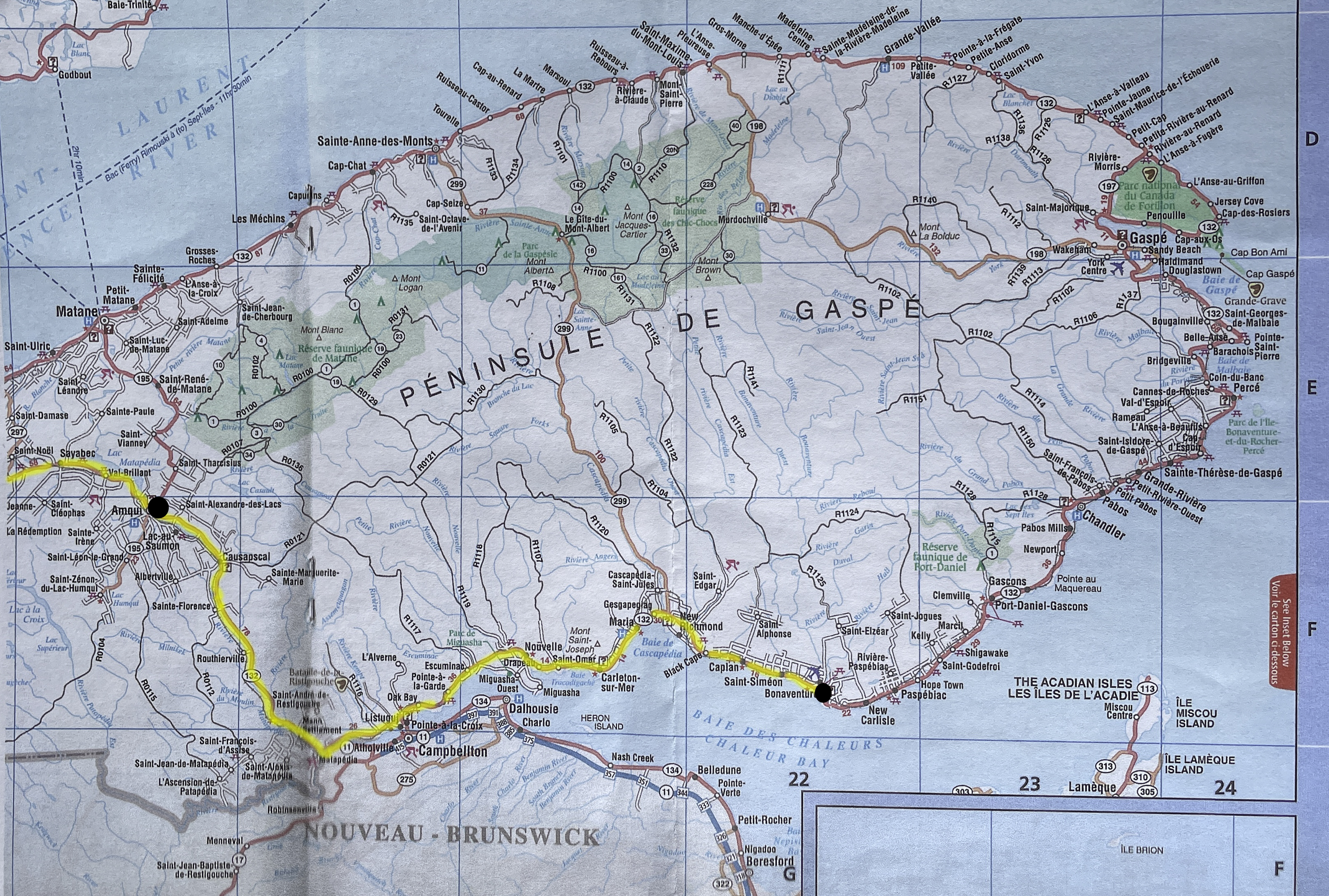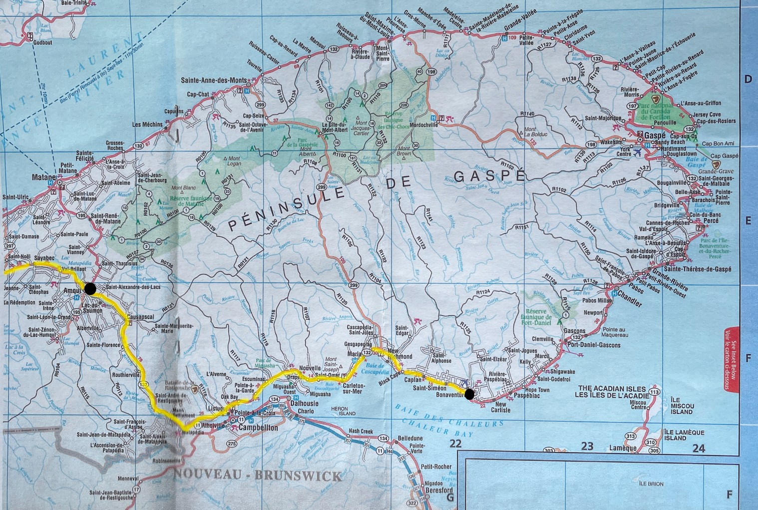 La météo est mi-figue, mi-raisin. Le ciel se dégage en milieu d’après-midi et une belle chaleur s’installe en entrant dans… la baie des chaleurs!:-) C’est pas une légende!!