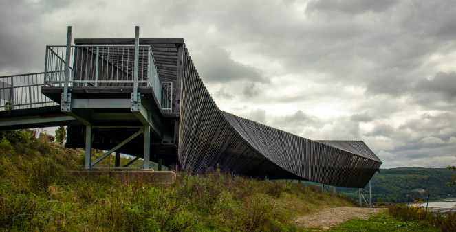 Une courte montée très abrupte permet d’accéder au belvédère en 15 minutes. Il y avait que je ne m’étais pas délier les jambes! (https://routedesbelvederes.com). Superbe vue sur le confluent des rivières!