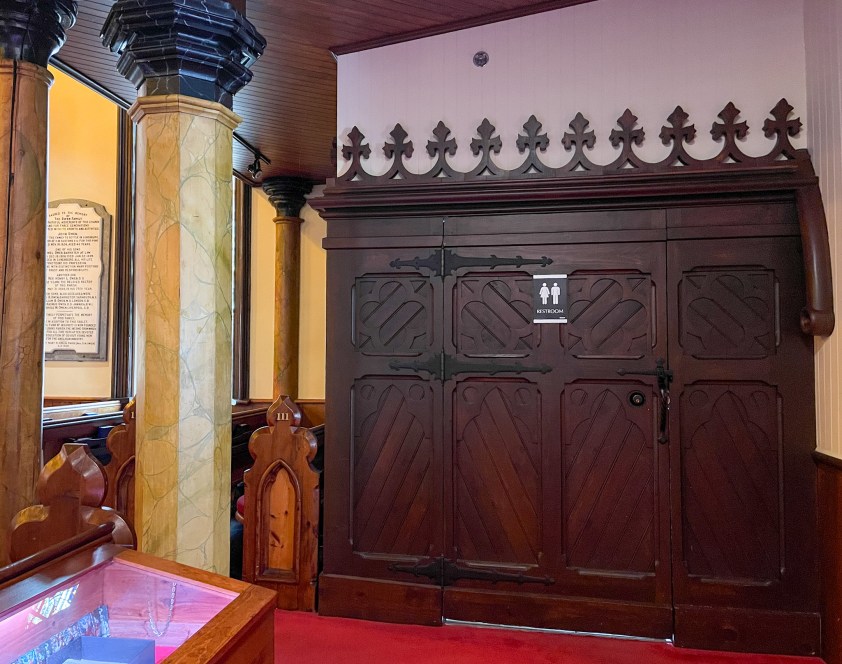 Les temps changent… Un des confessionnaux a été converti en… toilette(s). J’ose pas ouvrir la porte, mais je tends l’oreille… entendre si quelqu’un parle à haute voix! Par habitude, se confesser! En train de trôner! Là où on purge nos péchés!! 🤣 L’atmosphère de l’église est lourd, pesant. Sortir sur cette note humoristique fait le plus grand bien!! 😁