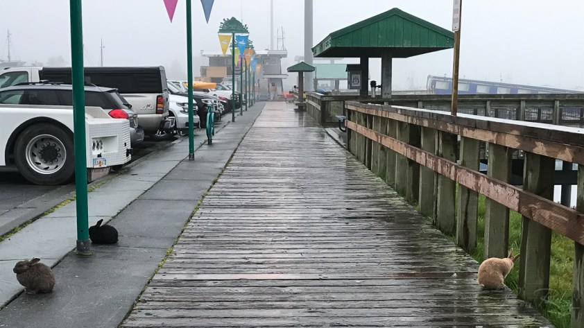7:15 – Mado est fatigante! Vraiment! Dès 6h elle tente de me sortir du lit. Hey ben… qu’est-ce que j’entends?? C’est de la pluie lâ-lâ qui tombe sur le toit de Criquette?? Pis me semble qu’il fait ben sombre pour 7:15!! Hey ben! Il mouille! Pis pas mal à part ça! Me semble que Dame Nature pourrait faire tomber toute cette pluie maintenant là où la nature en a vraiment besoin… Vancouver, BC; Yukon… Watson Lake et maintenant Carcross où j’étais il y a peu de temps (le plus petit désert au monde et là où j’ai fait du canot avec Serge). Ça brûle sérieux dans ces endroits actuellement. Allez Dame Nature: ici au sud de l’Alaska, la pluie ça fera!! 🙂