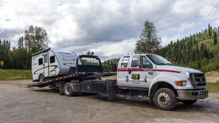 Couchée à 21h, levée à 6h… si je poursuis ce rythme, j’aurai rapidement des plaies de lit! 🙂 Plus sérieusement, ça fait du bien! Le décalage horaire d’une heure à chaque 2-3 jours commençait à peser. Avec ma « prime » photo, je ne peux pas m’étendre davantage sur ma condition. Oui c’est bien Criquette sur la plate-forme de la remorque. 😦 Elle a un souci…