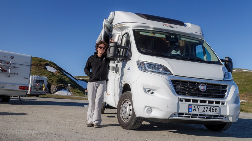 Mon voisin de lot au Bobil Park est le frère jumeau d’Olav Jr.. Ses propriétaires, Luidgi et Francesca d’Italie en ont fait l’acquisition il y a quelques mois pour leur retraite, mais comme on le voit fréquemment en Norvège, ils se sont fait démolir le miroir gauche par un autre camping-car dans un tunnel. À titre d’avertissement chez Touring-Car, un de ces miroirs démolis est accroché au mur à la réception… Bienvenue sur nos routes étroites!!