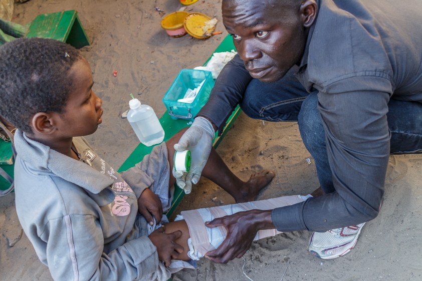 Dans la même daara que le jeune blessé au genou, je prodigue des soins à une fillette d’environ 4-5 ans. Dans une daara de talibés, les fillettes sont généralement les enfants du marabout. Je la place et déplace comme si elle était un robot mécanique. Elle exprime aucune émotion, aucune expression de douleur malgré ses plaies tout de même importantes. Je lui parle, lui flatte la joue, lui fredonne une petite chanson (ce qui fait rire les autres talibés), RIEN, pas une seule réaction, pas un début de rictus facial. Au moment où je me prépare à la remettre debout, car elle ne bronche pas, trois talibés en train de répéter le coran pointent leur doigt vers leur tête. La petite a une plaie granuleuse sur la tête, grande comme un deux dollars, que je n’avais pas vue. Je lui coupe les cheveux le plus près possible du crâne avec un ciseau afin de bien nettoyer tout cela et retirer cette galle granuleuse. Ça doit faire mal un peu, mais elle bronche pas, aucun muscle de son visage ou du cou ne se contracte. Malgré que son regard ait croisé le mien à deux ou trois occasions pendant les soins, il m’a semblé que cette fillette était morte de l’intérieur. Lire la suite